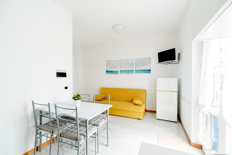 In seconda linea a 20 mt. dal mare, immobile con ingresso indipendente al primo piano, soggiorno con angolo cottura, camera matrimoniale, cameretta e bagno. Accessori : piano cottura ad induzione, lavatrice condominiale, divano letto.